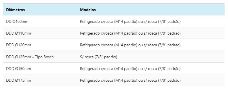 NOTA: Qualquer alteração nas características de fabricação do disco diamantado ocasionará na perda de garantia imediata, tais como: