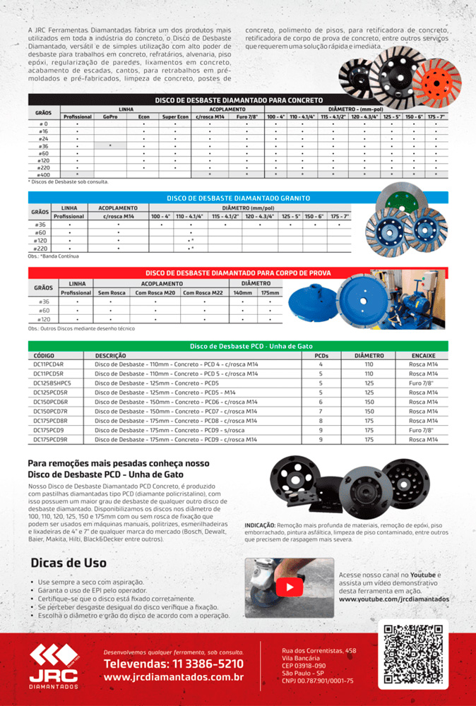 A JRC Diamantados disponibiliza em sua linha de lixas diamantadas lixas para máquina manual e também para politrizes de piso. Aqui podemos ter todas as opções que a JRC pode oferecer.