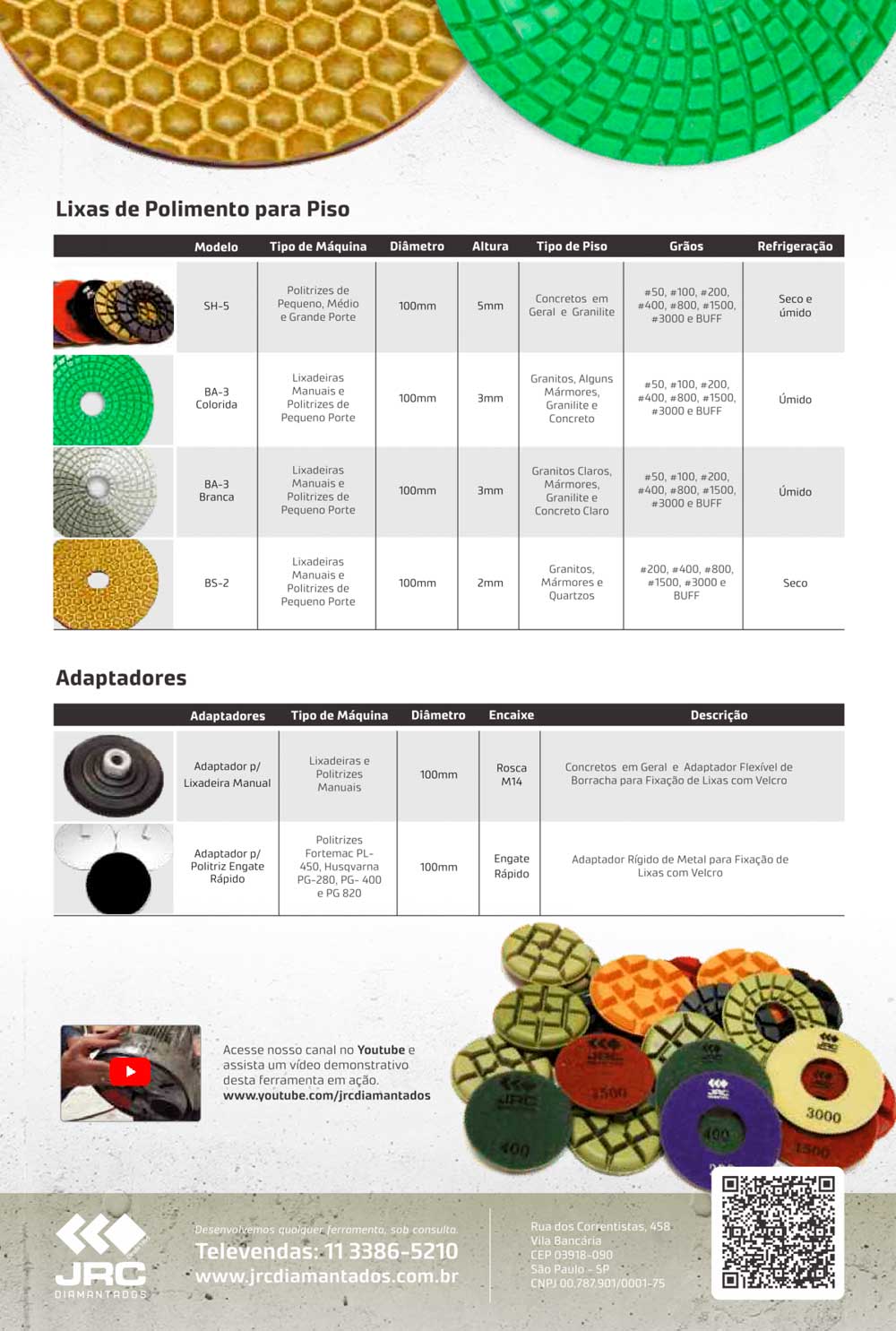 A JRC Diamantados oferece uma linha completa de adaptadores e suportes de fabricação própria para politrizes Husqvarna, LVS e outras marcas renomadas. Temos adaptadores para lixas manuais, garantindo a melhor adaptação às suas necessidades.