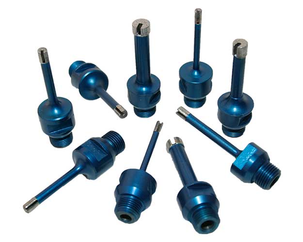 Produzida para a furação de abertura de boca de pias, torneiras, ralos entre outros serviços; utilizada em furadeiras de bancada (marmorarias) ou furadeiras manuais com refrigeração para perfuração em mármores, granitos, pedras, marmoglass, porcelanato e outras aplicações.