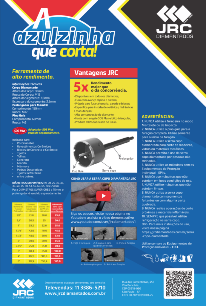 A Serra Copo diamantada JRC tem o melhor custo-benefício do mercado.