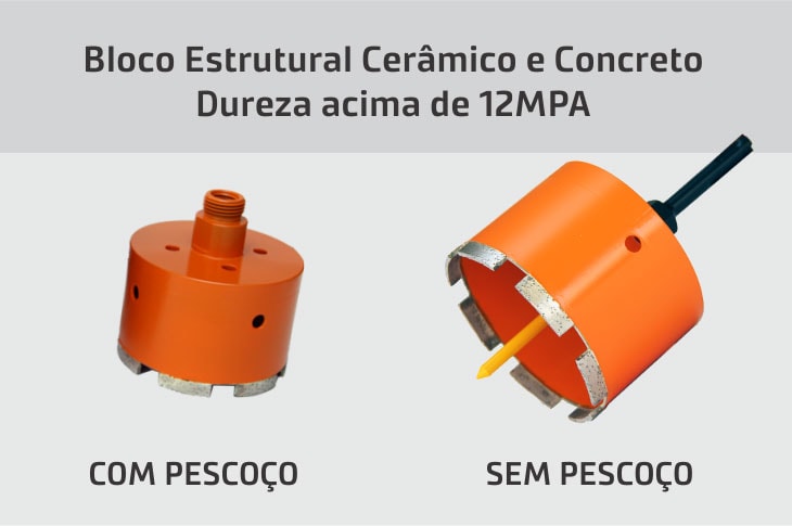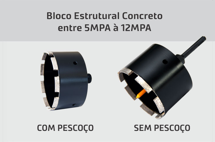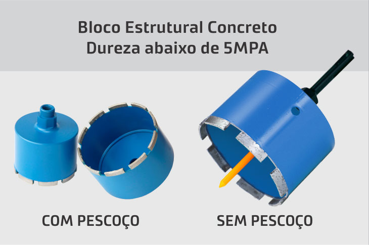 A recomendação é que seja indicada a serra copo Preta (acima de 6 MPA) por ser um pouco mais macia do que a serra copo Azul (Até 6 MPA).